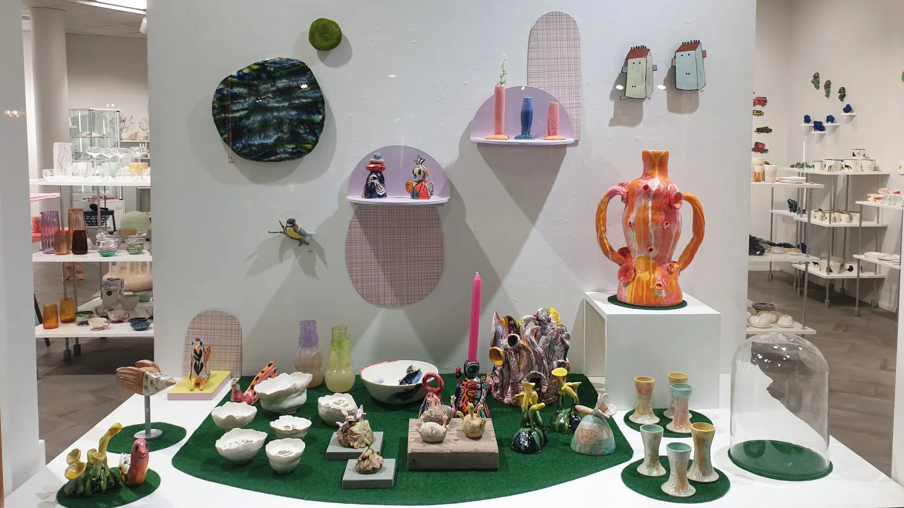 Fönsterutställningarna utforskar vårtecken i alla dess former – bokstavliga, symboliska och sinnliga. Genom keramik, glas och smycke blir det till att fånga ögonblicket när något nytt börjar ta form.